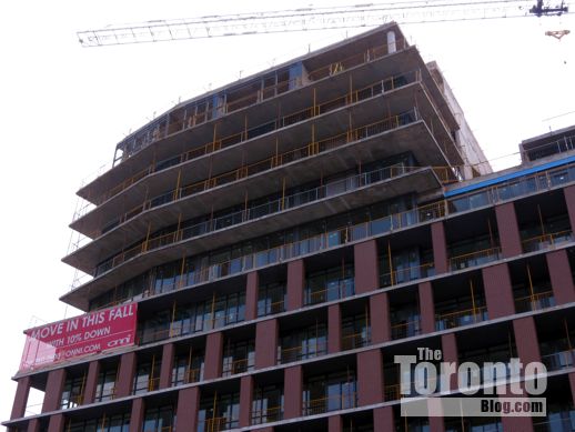 After I published construction photos and wrote about the Garrison project in a March 15 2012 post, the Toronto Star considered the question “How close is too close to the Gardiner?” in a March 18 2012 article of its own. But an Onni Group representative in Toronto wouldn’t speak to the newspaper about Garrison. The Star quoted Sue Young, a manager with Onni’s Toronto office, as saying: “From our perspective, we wouldn’t do an interview if we’re not comfortable with the storyline.”