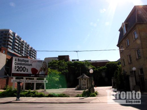 July 1 2011: A George Street view of the parking lot that will become Post House Condos, left, and the historic Bank of Upper Canada building the 21-storey tower will overlook (right)