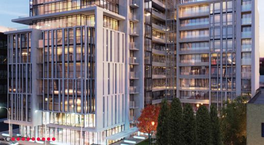 An artistic rendering showing a southeast perspective of Ivory on Adelaide
