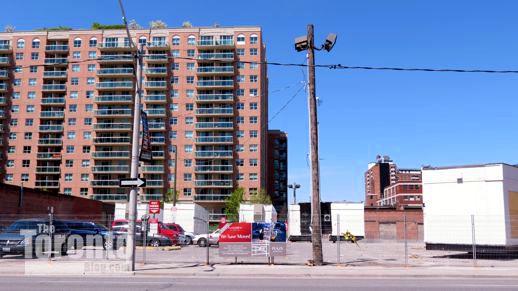 May 6 2012: The sales center has been dismantled and security fencing has been installed along the Adelaide Street flank of the property