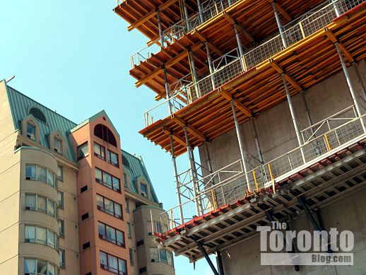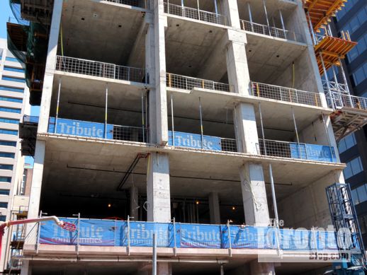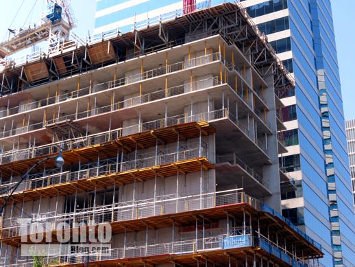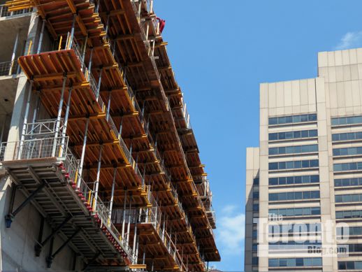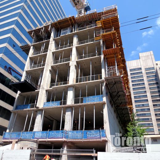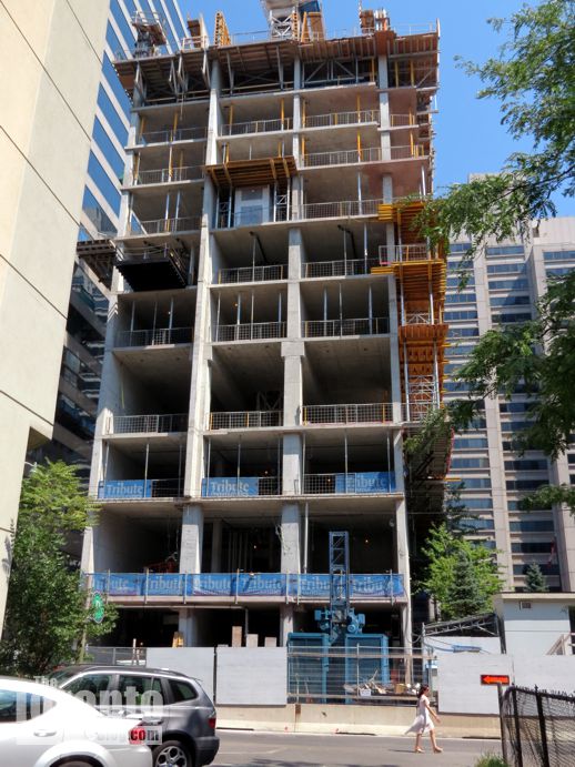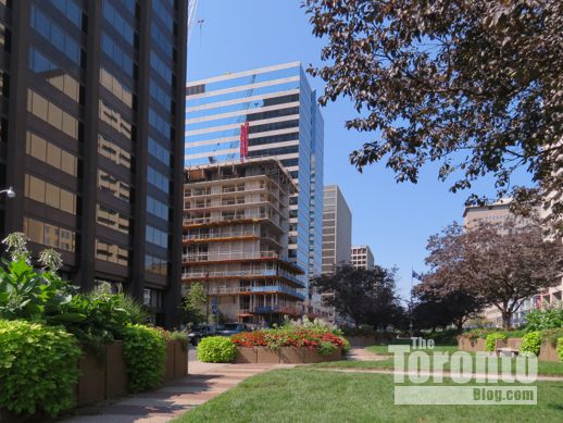 July 27 201: Looking south toward the RCMI Residences construction site from the University Avenue median just below Dundas Street