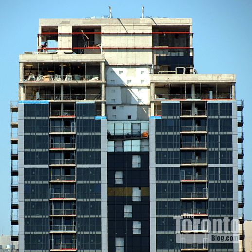 August 6 2012: Balcony panels have been installed on several lower floors
