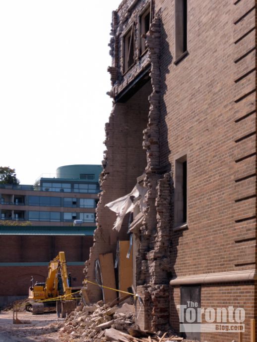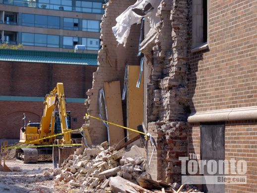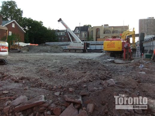 August 30 2012: Demolition progress is visible in this view from the Hazelton Avenue sidewalk at the southeast corner of the construction site
