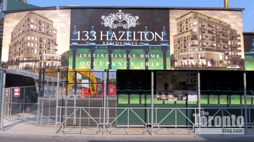 August 31 2012: Hoarding along the Hazelton Avenue sidewalk at the west side of the construction site