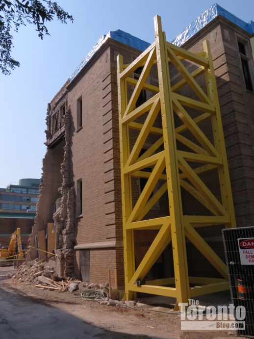 August 30 2012: Supports hold the facade of the St Basil’s School building in place while the rear of the 84-year-old structure is demolished