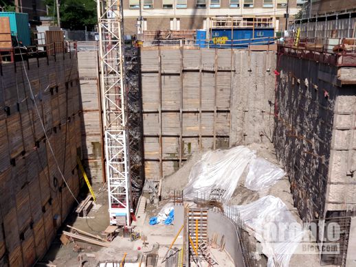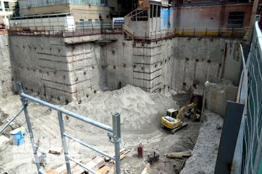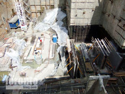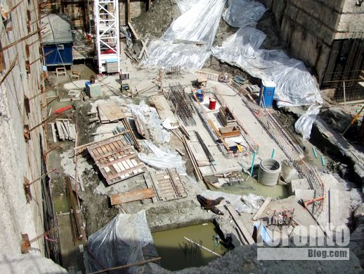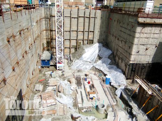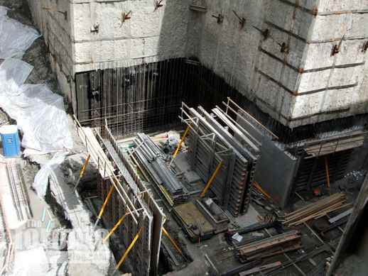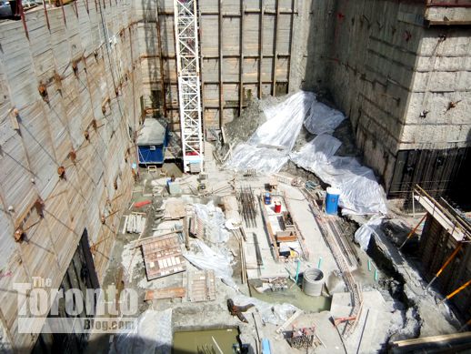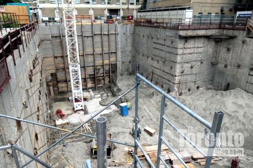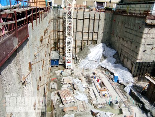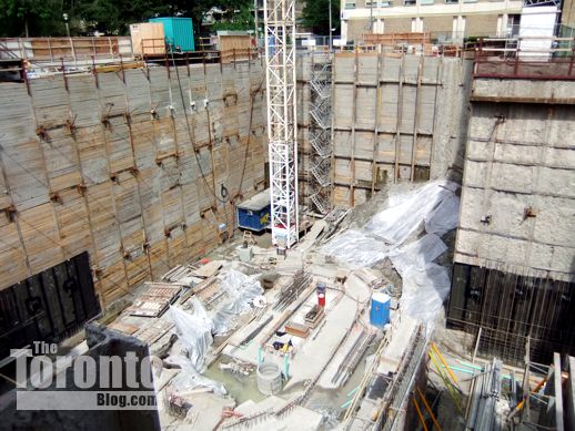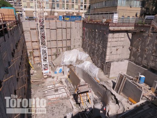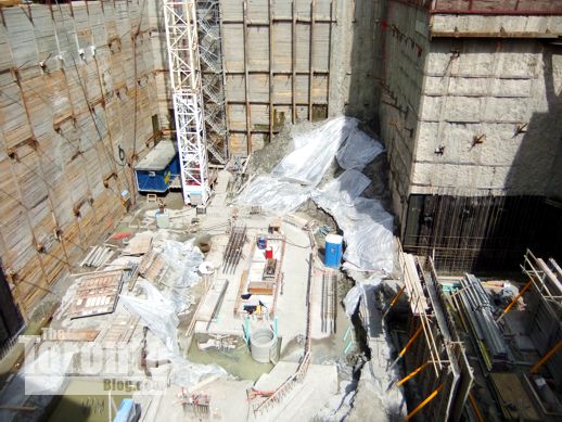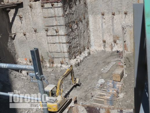 June 13 2012: Excavation continues as crews prepare the northwest corner of the pit for installation of the construction crane