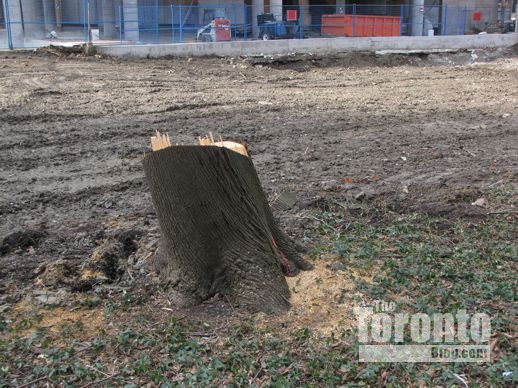 March 2 2012: Only the stump remains of the big shade tree that had stood at the corner