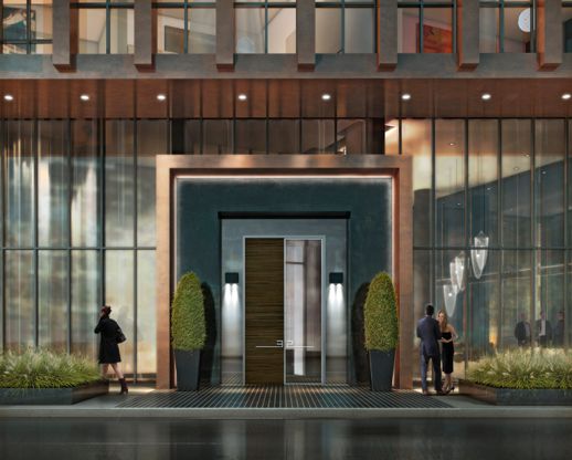 The artistic rendering of The Yorkville entrance appears on the project website