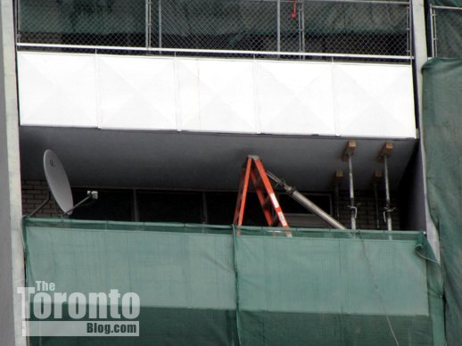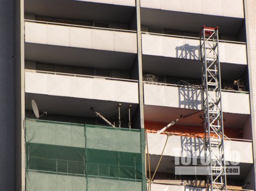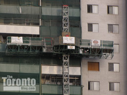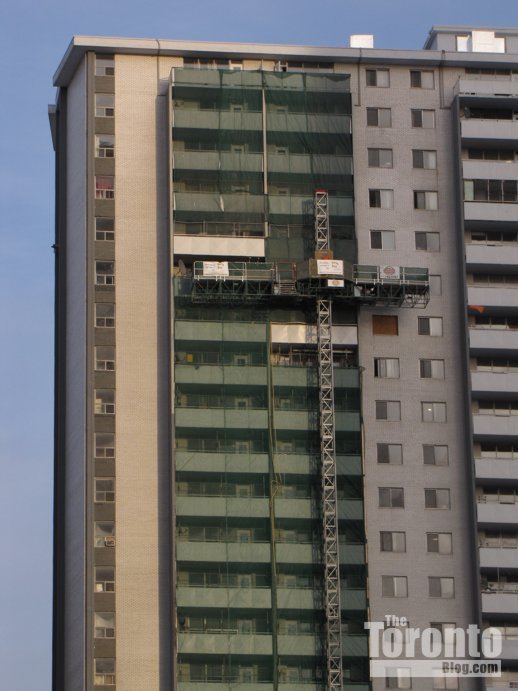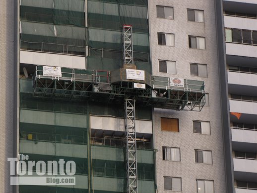 August 24 2013: It’s only partly complete, but the phoenix mural being painted on the south wall of 200 Wellesley Street East has already brightened the building — and the St James Town skyline. I shot this photo from three blocks to the southwest at the corner of Homewood Avenue and Maitland Place.