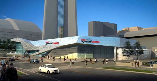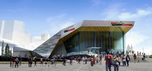 Designed by Toronto’s B+ H Architects, the 3-storey facility will feature a 750,000-gallon shark lagoon which visitors will be able to observe through an acrylic tunnel with a 315-foot moving walkway. The aquarium will also have a tropical reef, exhibits for Great Lakes, Atlantic and Pacific habitats, a Marine and Freshwater Education Centre with classroom space, a restaurant and a gift shop.
