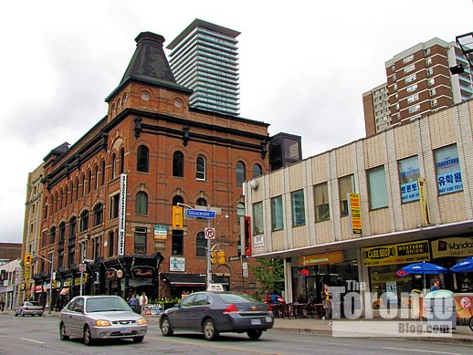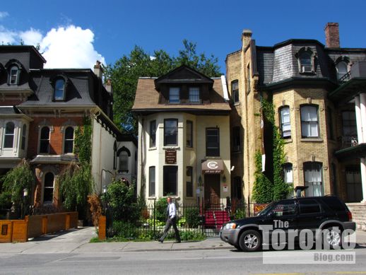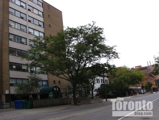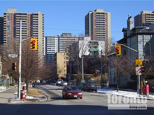 September 26 2011: Sherbourne Street view looking west toward the proposed condo tower site. The apartment building at left is 155 Wellesley St. E., while the condo tower at right rear is the 39-storey Verve at Wellesley & Homewood Ave.