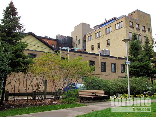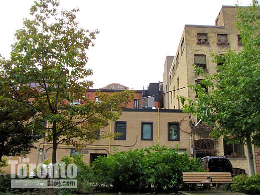 August 20 2011: The north half of the oddly-shaped 159 Wellesley Street East development site, looking east toward apartment towers in St James Town and the Ernescliffe co-op building at 477 Sherbourne Street