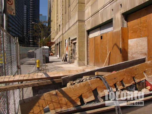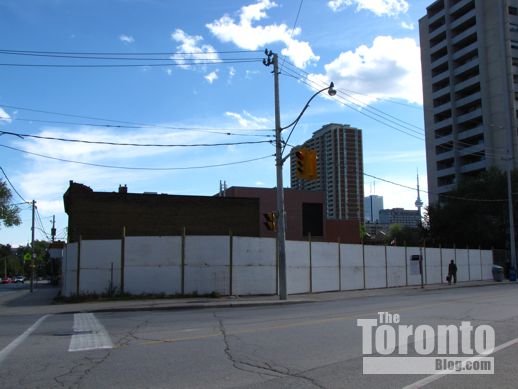 August 20 2011: Looking east across the southern half of the development site. A three-storey building with upper-level apartments and ground-level retail and restaurants on Sherbourne Street sits to the south of the fence