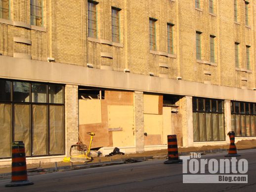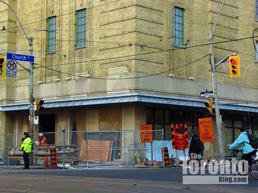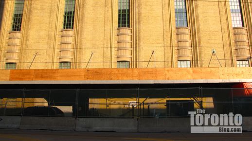 August 22 2011: Wooden hoarding was installed in place of the chain link fence that had surrounded the site while the gas station facilities and donut shop that previously occupied the property were being demolished