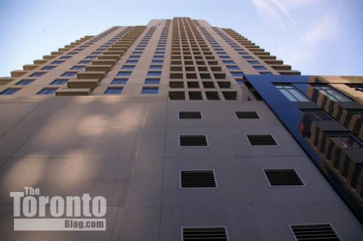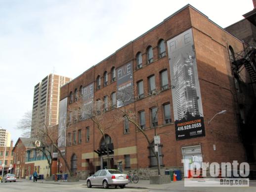 April 19 2011: The Eleven Residences condominium building at 11 St Joseph Street was originally another historic Rawlinson Cartage building. When the building was redeveloped into a residential highrise in the early 2000s, its facade was dismantled and reassembled — as will be the case with the facades for the buildings where FIVE Condos will rise.