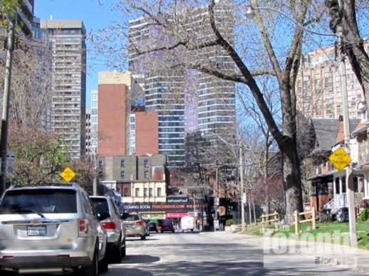 April 19 2010: Looking west on Dundonald Street toward the FIVE Condos site