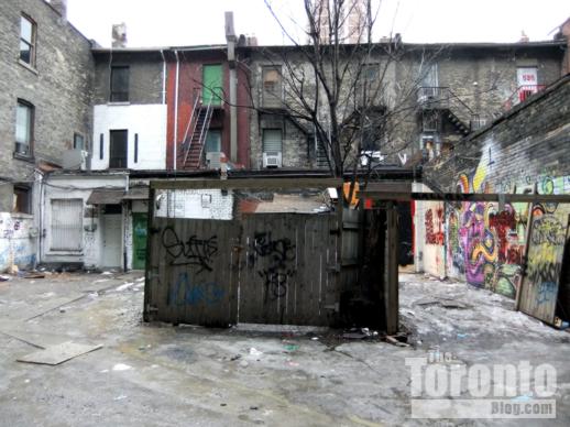 March 12 2011: A view of what’s at the east end of the passageway, looking toward the back of several buildings that front onto Yonge Street.