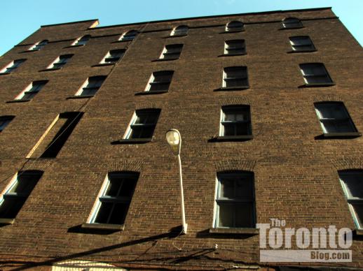 December 4 2010: Looking south on St Nicholas Street at the west side of the FIVE Condos site. This brick facade will be dismantled and rebuilt.