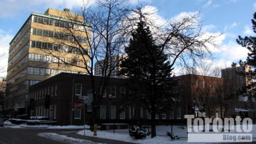 March 29 2011: King Street view of the 11 Charlotte Street condo development site; the Mountain Equipment Co-Op store on King is the brick building at right.