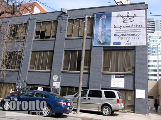 Looks to me like Lamb and Clewes have another winner on their hands. Charlotte Street is an in-demand area for condo buyers (a friend of mine sold his condo on the street in mere days, for a hefty profit), and I’m sure this project will be another Entertainment District sales success. Below are photos, taken at various times over the past three years, of the King Charlotte site and its neighbours.