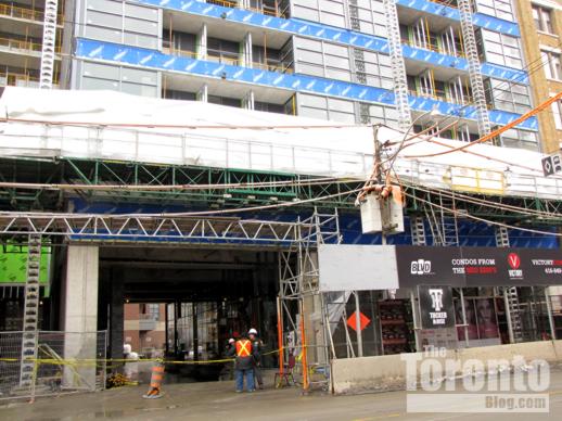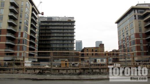 February 15 2011: Revitalization project activity next to the Paintbox Condos and Regent Park Arts and Cultural Centre construction site on Dundas Street East