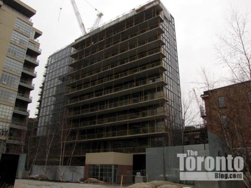 Street-level view of One Park West condo from Sackville Street