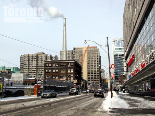 View towards the Ripley Aquarium site from the base of the CN Tower