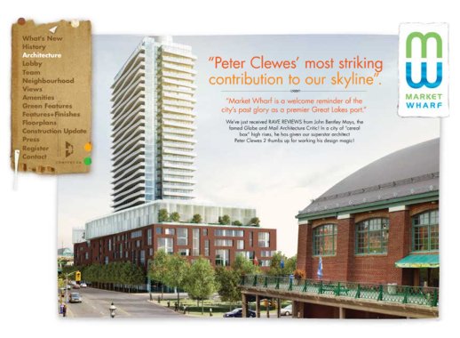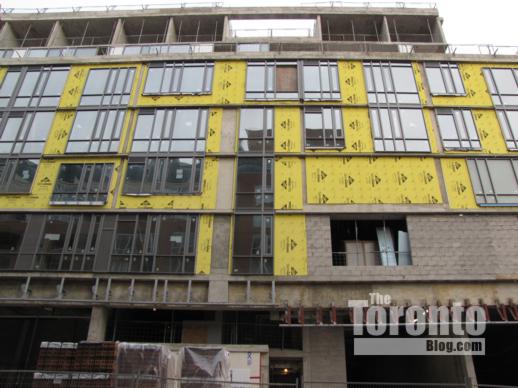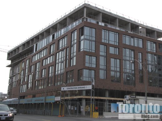 A project of DesignSorbara, the complex actually is two buildings in one: a 10-storey building in the front, and a 12-storey sibling to its rear. It’s also a mix of two distinct architectural styles. The front building’s design was inspired by the various reddish-brown warehouses in the neighbourhood, while the rear structure features “a mid-1900s-inspired horizontal layout of windows and masonry,” according to the 400 Wellington website. Together, the buildings will provide a “contrast of traditional and modern, of horizontal and vertical, of glazing and masonry,” housing 102 residential units.
