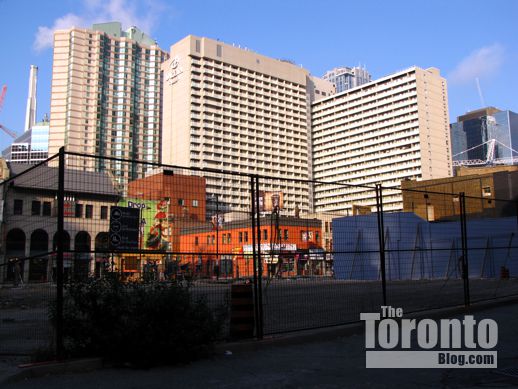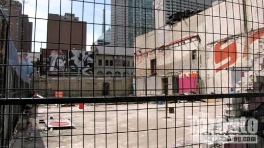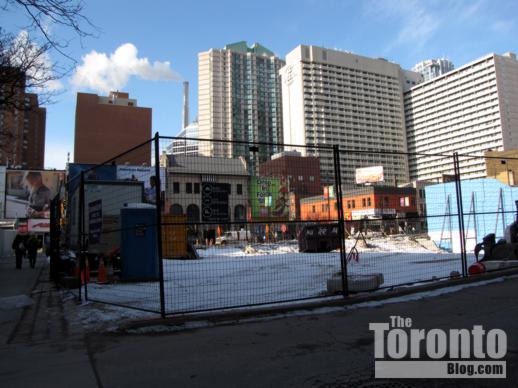 November 1 2011: Ryerson Student Learning Centre site viewed from Gould Street at O’Keefe Lane, looking northwest across Yonge Street