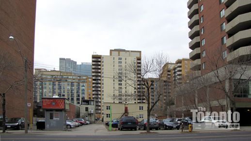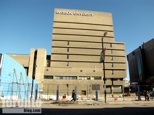 March 7 2011: Looking east along Elm Street toward the Student Learning Centre site. The new 9-storey building will dominate this sightline, rising directly in front of the concrete Ryerson University Library building. Like the library, the centre will be 51 meters tall (including mechanical equipment).
