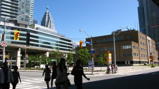 July 1 2011: 90 Harbour Street seen from the intersection of York Street and Lake Shore Boulevard, looking to the northeast