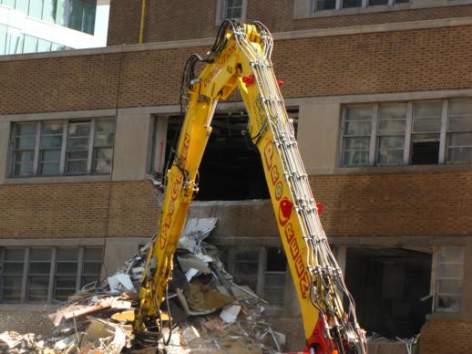 July 17 2011: Demolition machine working beside the west wing of 90 Harbour