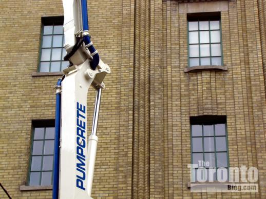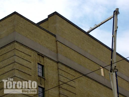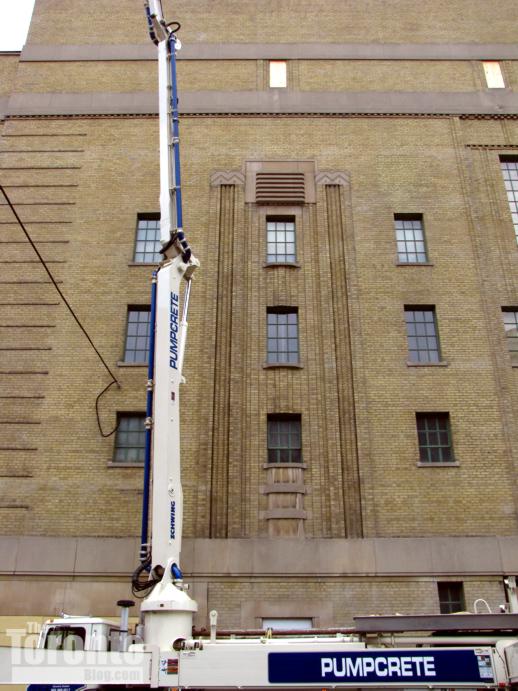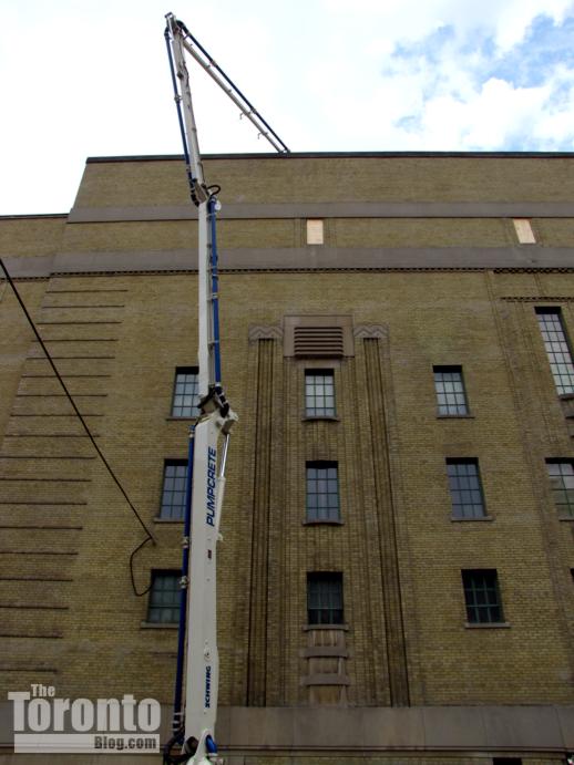 May 13 2011: Concrete pumper above the southeast corner of Maple Leaf Gardens