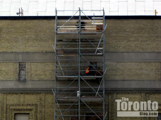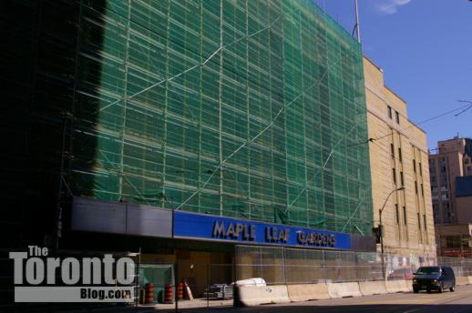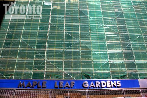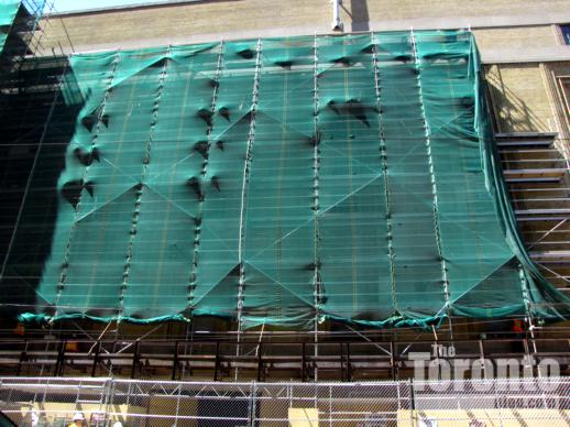 June 14 2011: Scaffolding rises up the south side of Maple Leaf Gardens