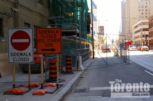 April 30 2011: The sidewalk and one westbound lane on Carlton Street have been closed so crews can finish exterior work on the Gardens