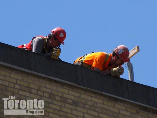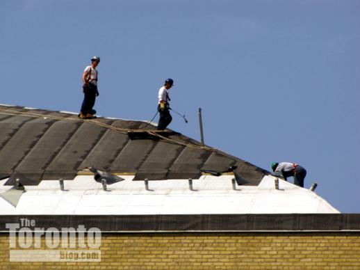 May 13 2011: Construction workers on the roof of Maple Leaf Gardens