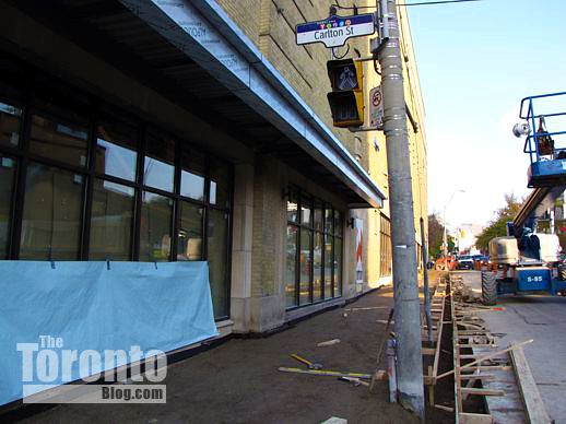 November 20 2011: Work continues on the Carlton Street marquee. The entrance to the Ryerson University Athletics Centre will be here.