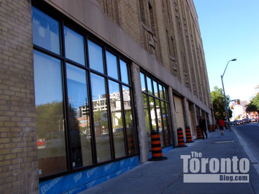 November 1 2011: The Carlton Street facade of Maple Leaf Gardens. The public sidewalk next to the building, along with one lane of westbound traffic, have been closed virtually all of this year.
