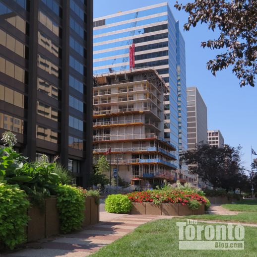 Approaching 30: Won’t be much longer before construction of the RCMI Residences condo tower starts to soar above Zurich — the Zurich Insurance Canadian headquarters at 400 University Avenue, that is.