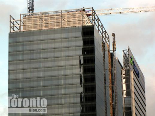 February 18 2011: Simcoe Street view of the cranes atop the PwC office tower