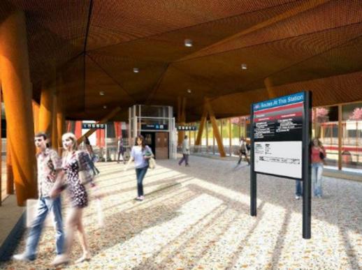 … and a view from yesterday of construction trailers and hoarding on the site of what will become the entrance plaza depicted above