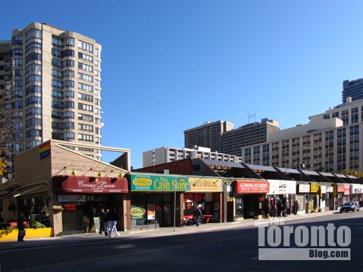The Huntley-Isabella neighbourhood is bounded on three sides by busy downtown thoroughfares: Jarvis Street on the west, Bloor Street on the north, and Sherbourne Street on the east. Isabella runs east-west, linking Jarvis and Sherbourne. Earl Street and Earl Place, to its south, are quiet cul-de-sacs on the east and west sides of Huntley Street, respectively. The area is predominantly residential in character, with several highrise and lowrise apartment buildings plus numerous semidetached three-storey homes on tree-lined Selby, Linden and Huntley Streets, as well as on Earl Street and Earl Place. The area also is home to the Casey House HIV/AIDS hospice, the Isabella Hotel & Suites, the Sacré-Coeur Catholic elementary school, a campus of the Msgr. Fraser College adult learning centre, and various offices (the massive Rogers Communications head office building looms large over the neighbourhood from the northwest, while the Greenwin Square office tower, highrise apartment building and shopping centre complex do the same from their location to the north between Bloor and Selby Streets).
