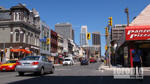 March 1 2011: The building on the northwest corner of Huntley & Isabella is the Samuel R Wickett House, built in 1901 at 122 & 124 Isabella Street. The Rogers Communications building and X Condos tower loom large in the background