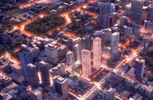 February 23 2011: The huge Rogers Communications head office sits at left rear; the Greenwin Square apartment and office towers on Bloor Street stand at right