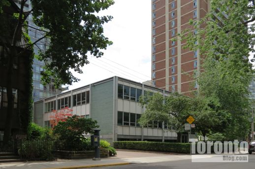 February 23 2011: The second former CAS building at 15 Huntley Street. The tower at right rear is the James Cooper Mansion condo complex