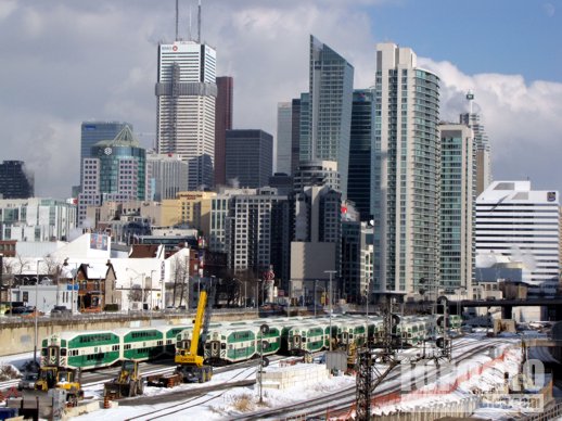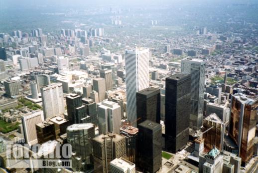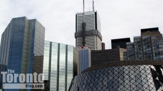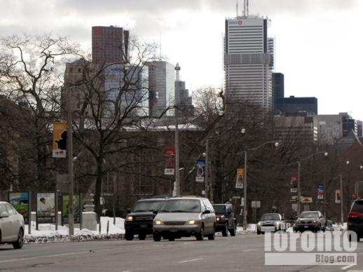 February 23 2011: The huge Rogers Communications head office sits at left rear; the Greenwin Square apartment and office towers on Bloor Street stand at right