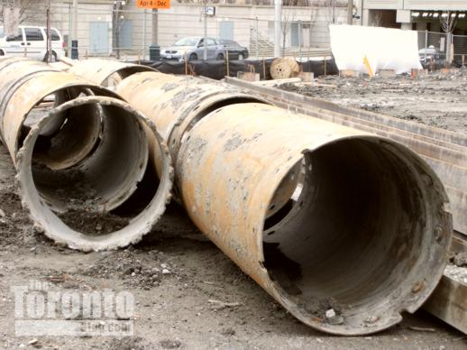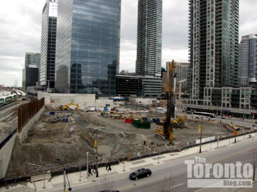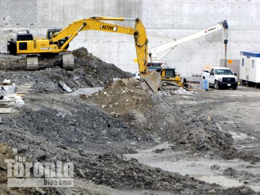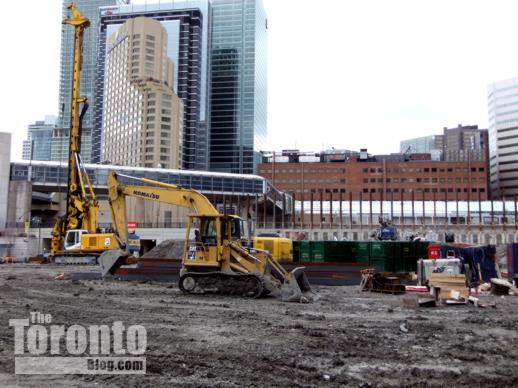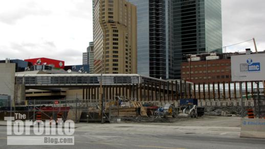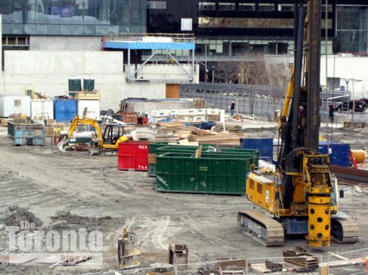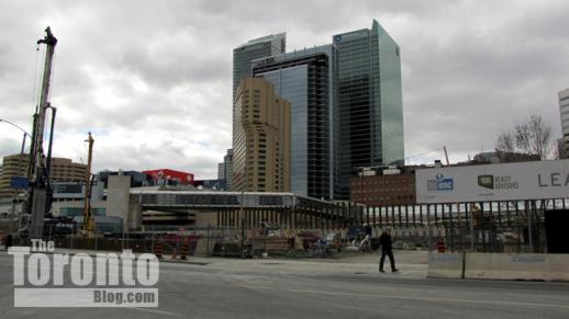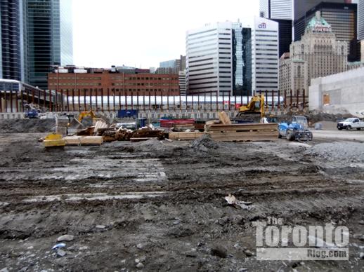 May 4 2011: Demolition progress viewed from the groundbreaking ceremony location, looking west toward the enormous Rogers Communications building