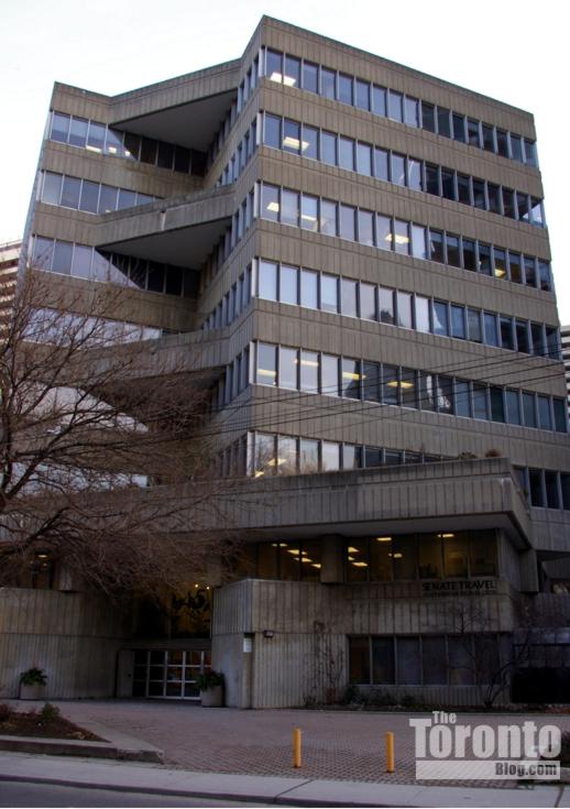The angled south face of the Delta Hotel, seen from Bremner Boulevard
