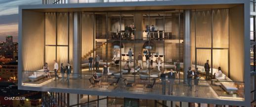 A signature design element of Chaz.Yorkville is the large rectangular box that juts from the tower’s south side. It’s the Chaz Club, a 2-storey private club for exclusive use of condo residents.