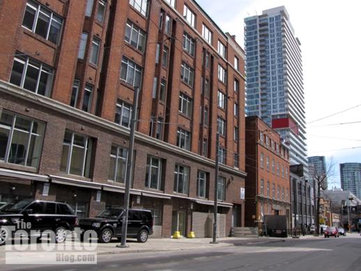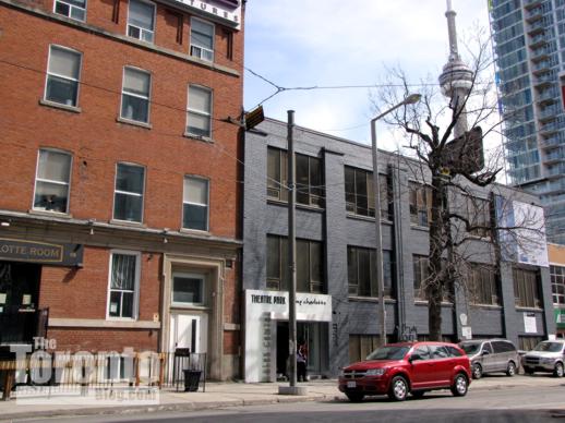 March 29 2011: The Capitol Building at 366 Adelaide Street West (also known as the Hobberlin Building, from 1920) faces directly down Charlotte Street.